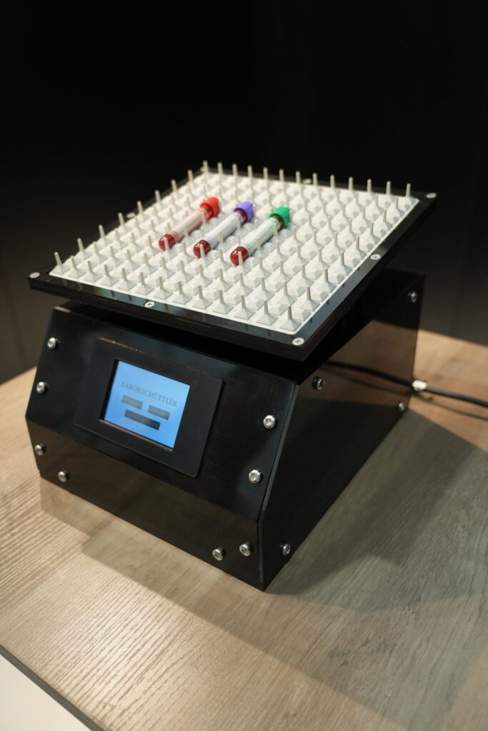 Ein Laborschüttler ist ein Gerät, das zur gleichmäßigen Durchmischung von Proben eingesetzt wird. Am Touch-Display können Geschwindigkeit und verschiedene Bewegungsmodi, wie lineares, oder kreisförmiges Schütteln eingestellt werden, um eine optimale Vermengung zu gewährleisten. Diese kontrollierte Bewegung verhindert Ablagerungen und sorgt dafür, dass die Proben homogen bleiben. Besonders in der medizinischen Diagnostik und Blutanalytik ist der Laborschüttler unverzichtbar. Das Gerät wird unter anderem verwendet, um zu vermeiden, dass Blut in Abnahmeröhrchen gerinnt, insbesondere wenn spezielle Medikamente enthalten sind. Unter anderem dient der Laborschüttler dazu, die Gerinnung von Blut in Abnahmeröhrchen zu verhindern, insbesondere bei Proben mit speziellen Medikamenten. Durch das kontinuierliche Bewegen bleiben Blutzellen und Flüssigkeit gleichmäßig verteilt, was eine präzise Untersuchung ermöglicht. Je nach Aufsatz der Schüttelplatte können unterschiedliche Gefäße, wie Reagenzgläser oder Kolben eingesetzt werden, wodurch das Gerät vielseitig nutzbar ist.