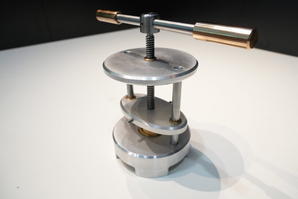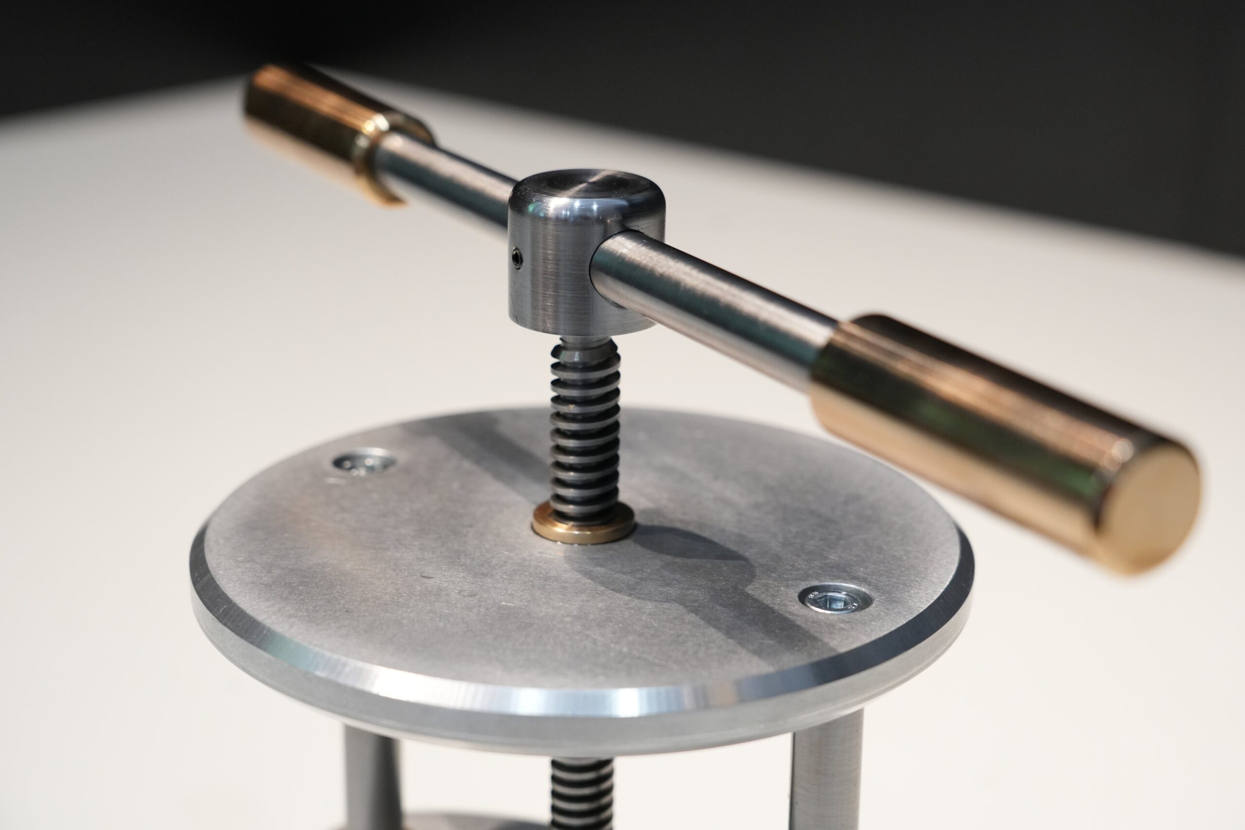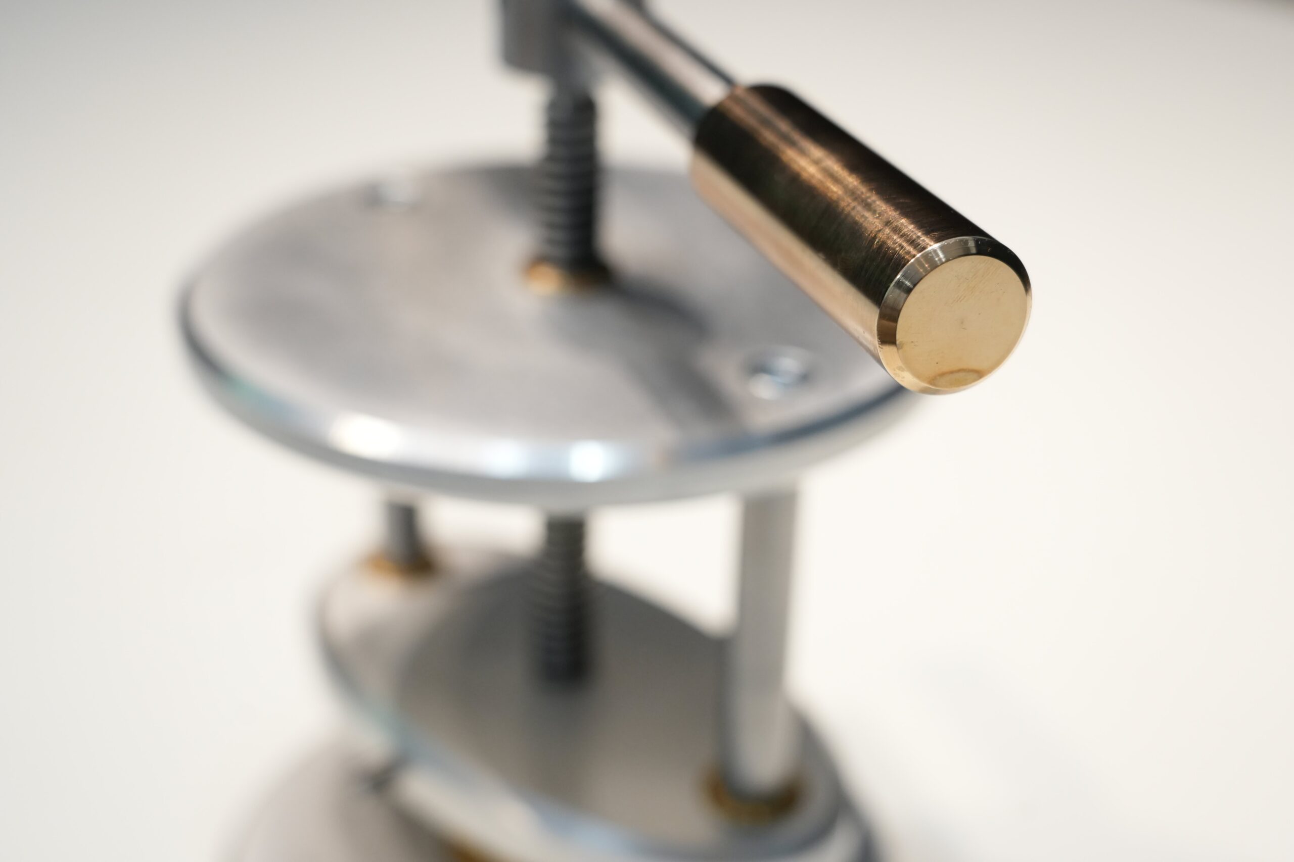Dieser Nussknacker überzeugt nicht nur durch seine Benutzerfreundlichkeit, sondern auch durch seine einfache, aber dennoch robuste Bauweise. Der Standfuß und die Führungssäulen sorgen für eine stabile und reibungslose Benutzung. Die Spindel ist mit einem Trapezgewinde ausgestattet und führt die Druckplatte and den Führungssäulen nach unten. Der auf beiden Seiten erhöhte Griff bewirkt eine komfortable Handhabung und unterstützt den Bediener. Die gewählten Materialien sorgen nicht nur für das leichte Gewicht und die Stabilität, sondern auch für das äußerliche Design welche den Nussknacker durch die schönen Bronze Akzente gut zur Geltung kommen lassen.