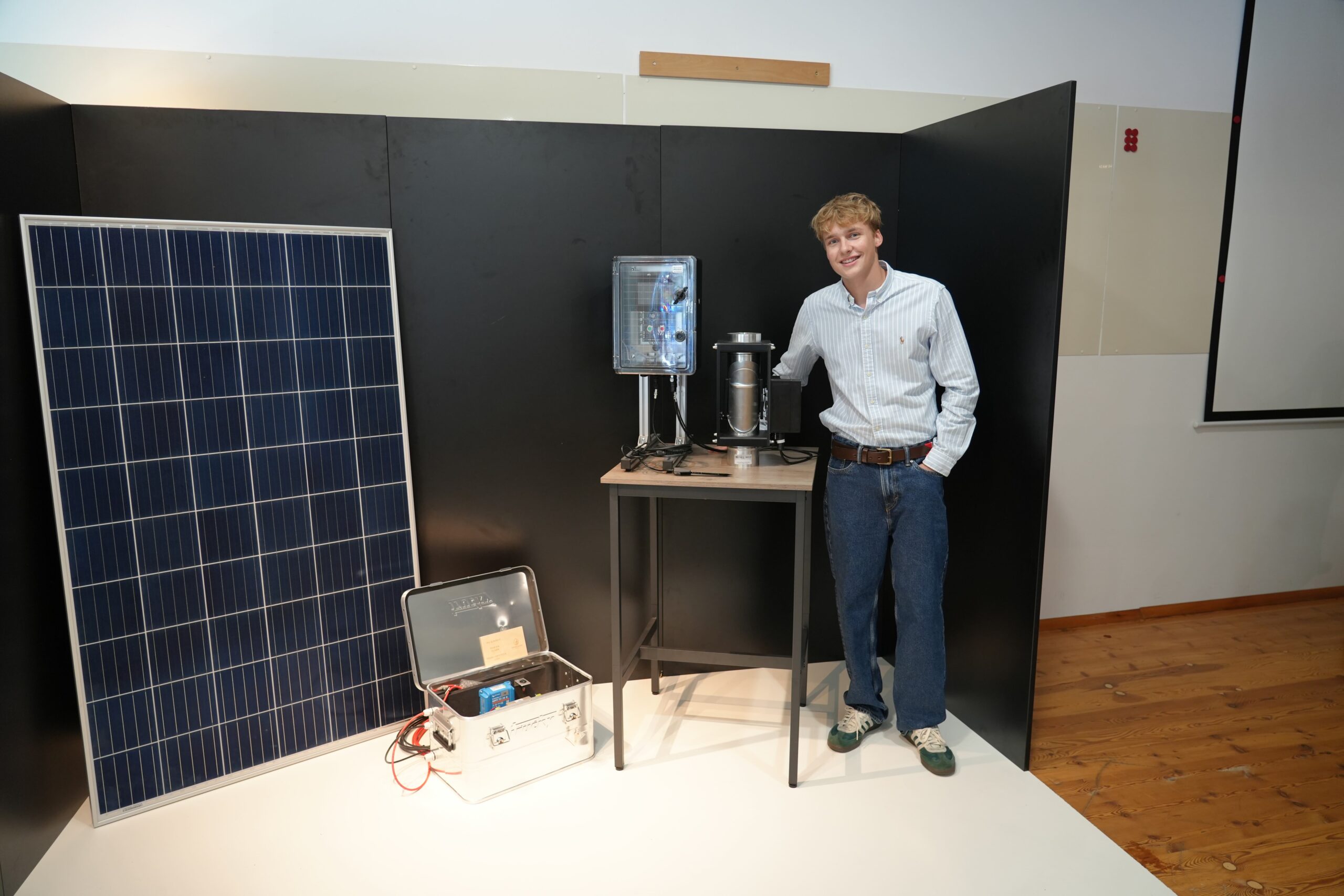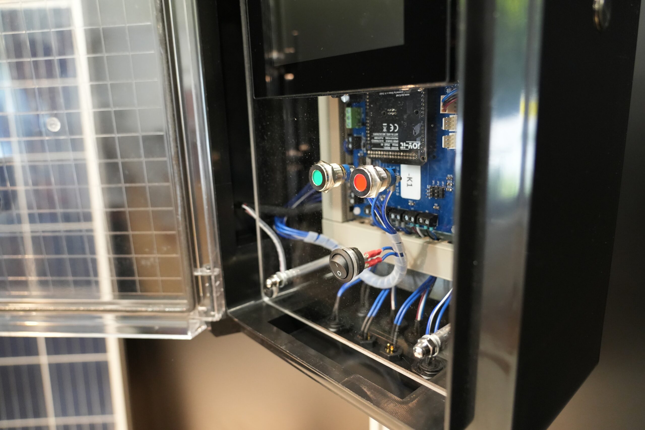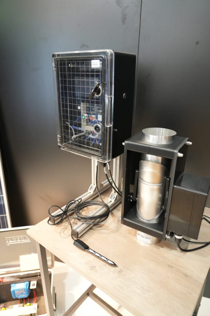Das von mir entworfene System soll einen 60-Liter-Behälter automatisch mit Regenwasser befüllen um damit einen bestimmten Gartenbereich konstant zu bewässern. Sobald ein Sensor – bestehend aus einem Ultraschallsensor sowie einem mechanischen Schwimmerschalter – erkennt, dass der Behälter voll ist, schließt eine motorbetriebene Klappe die Regenrinne automatisch. Ein Feuchtigkeitssensor in den jeweiligen Beeten oder Blumentöpfen misst den Bodenfeuchtigkeitsgehalt und steuert die Bewässerung entsprechend. Falls Bewässerung erforderlich ist, wird das Wasser aus dem Behälter über eine Tauchpumpe durch ein Tropfbewässerungssystem gezielt zu den Pflanzen geleitet. Die Energieversorgung der Pumpe erfolgt über ein Photovoltaik-Modul, das Strom erzeugt und in einer 12V-Batterie speichert. Das System wird über Taster und ein Touchdisplay gesteuert. Auf dem Display lassen sich der Füllstand des Wasserbehälters sowie die Bodenfeuchtigkeit in Echtzeit ablesen.